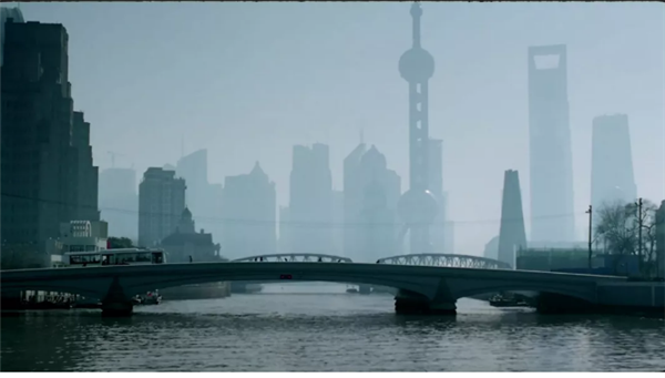 这是谢琴在大桥上骑车的一个镜头。人很渺小。