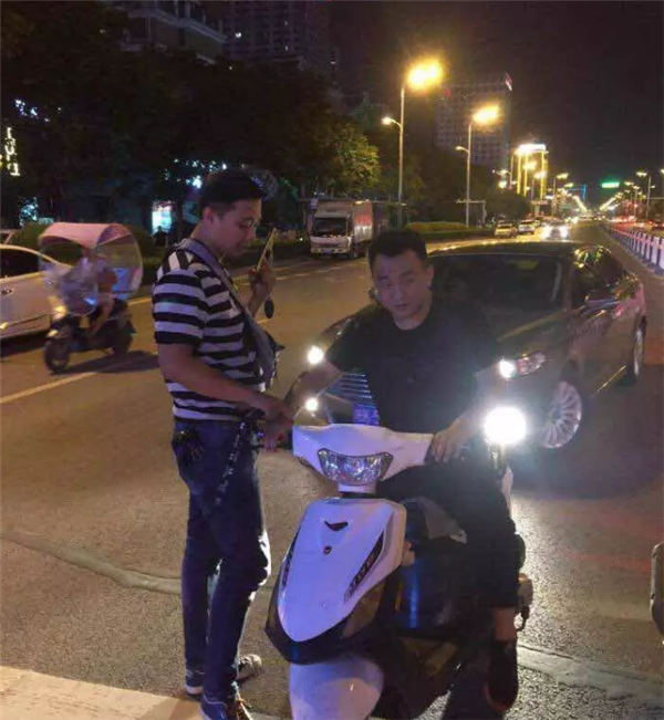 7月13日晚阜阳交警一大队便衣小分队民警查获一疑似酒驾的摩托车,移交辖区交警中队做进一步处理。