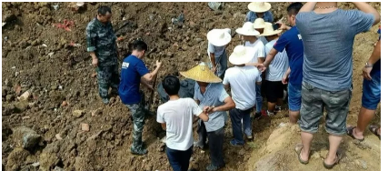 刨开渣土进行救援,