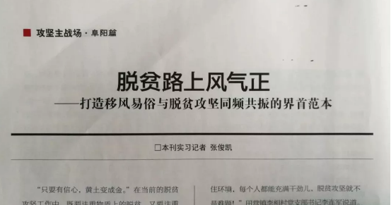 按:8月1日,国家级刊物《中国扶贫》杂志第15期,看法“攻坚主战场”阜阳篇刊发了三篇报道,其中,界首两篇报道《脱贫路上风气正》《傻妮儿高丽萍》成为阜阳亮点。《中国扶贫》杂志是由国务院扶贫开发领导小组办