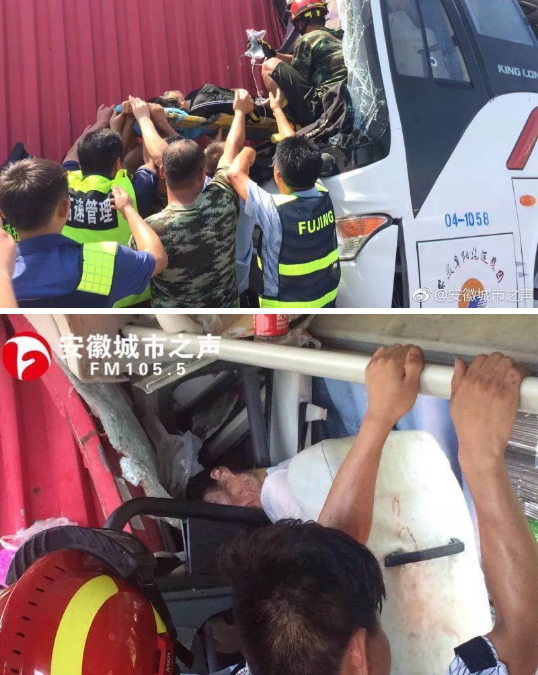 昨日中午,S17蚌合高速蚌埠往合肥方向92公里处(杨庙收费站以北约5公里、合肥市长丰县境内),阜汽集团一辆客车与货车相撞。客车上大约20多位乘客,目前已有20位受伤人员紧急送往医院。目前已经出动直升机