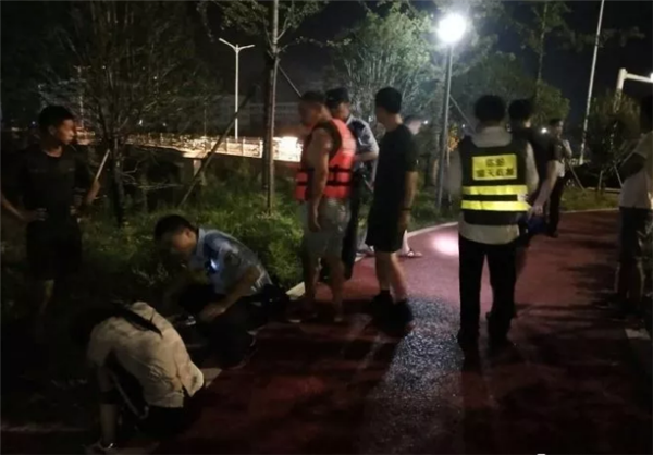 8月9日凌晨阜阳市经济开发区东三环大桥下一名女子跳河轻生阜阳蓝天救援队火速赶往现场救援到达现场后救援人员分工部署一名队员安慰这名跳河女子分散她的注意力,与此同时另一名队员携带下水救生装置,实施营救正当