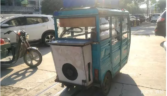 在三轮车上装空调想想应该都是很拉风的事吧阜阳一位饭店老板把想象变成了现实~3年前,阜阳市民邢继涛为了进货方便,花了2300块钱在自己的一辆旧三轮车上安装了一部空调,成了当地唯一一辆装有空调的三轮车。多