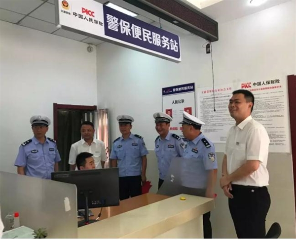 6月7日上午,阜南县公安局交通警察大队与人保财险阜南分公司联合建设的全县首家“警保便民服务站”揭牌仪式在我县人保财险分公司举行,阜南县交警大队副队长陈建军、副教导员李振、车管所负责人汪浩、车管所指导员